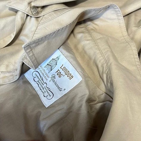 was looking for a trench coat for the fall! Phoebe gave me the ingredients: vintage/pre owned, all weather, traditional shape with a bit of personality - and this is what I found: